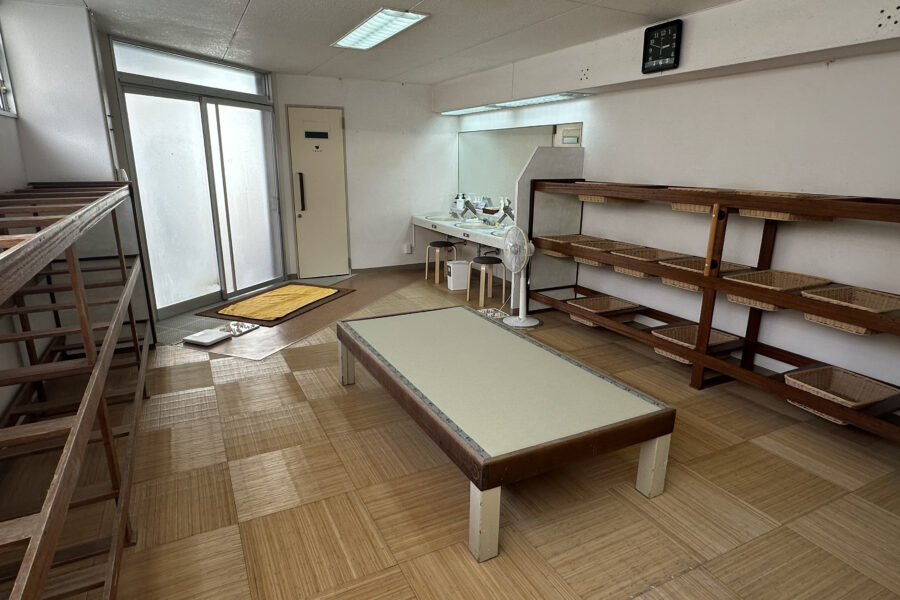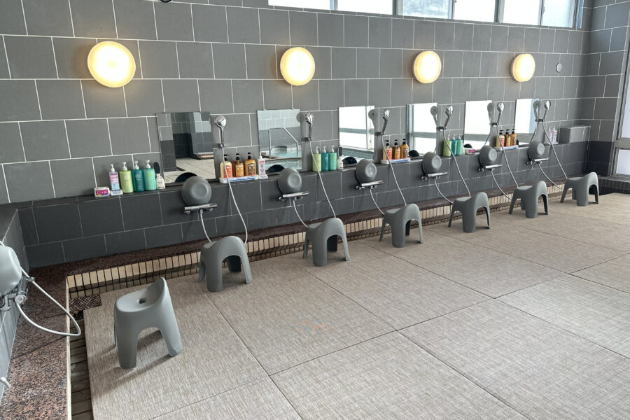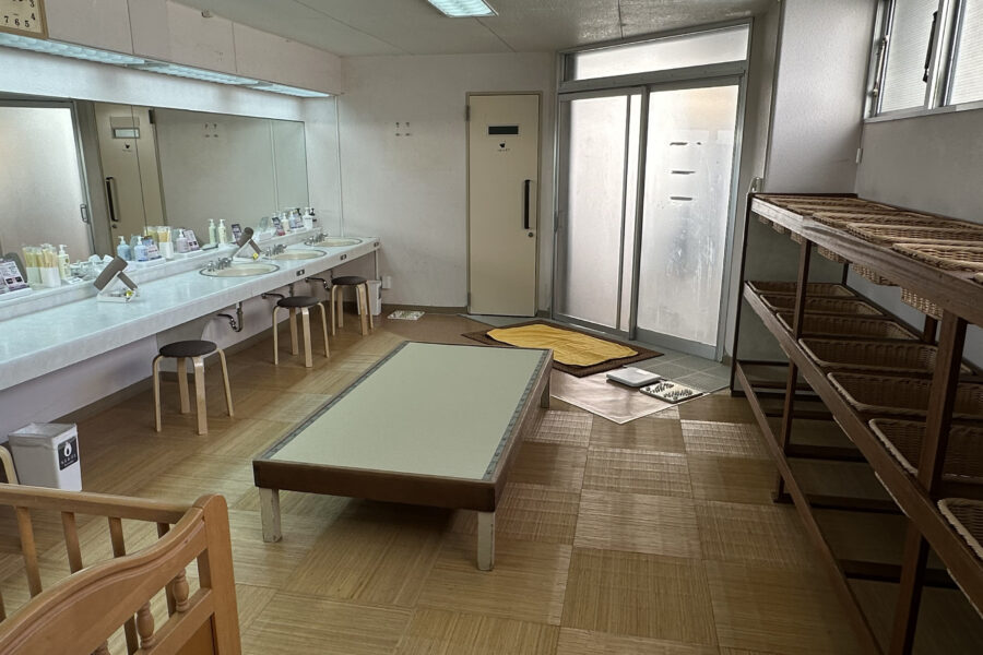 やさしい畳の質感に包まれる、新しい吹上砂丘荘のお風呂。現在は宿泊者の方のみ、ご入浴いただけます。